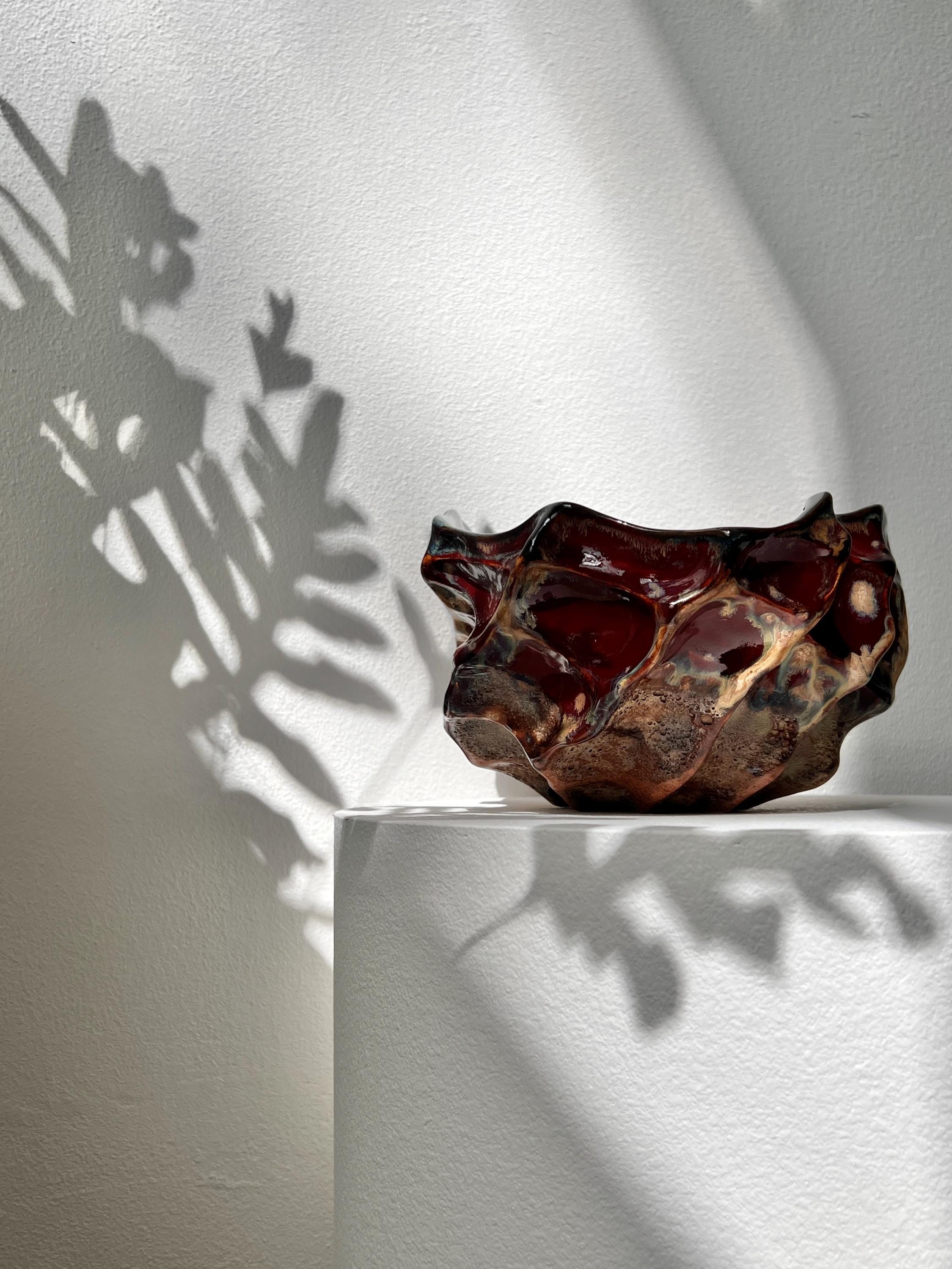 Hand built ceramic bowl. A sculptural exploration of texture, depth, and organic form. Made with clay, shaped by hand, the piece unfolds in irregular edges that resembles natural formations.